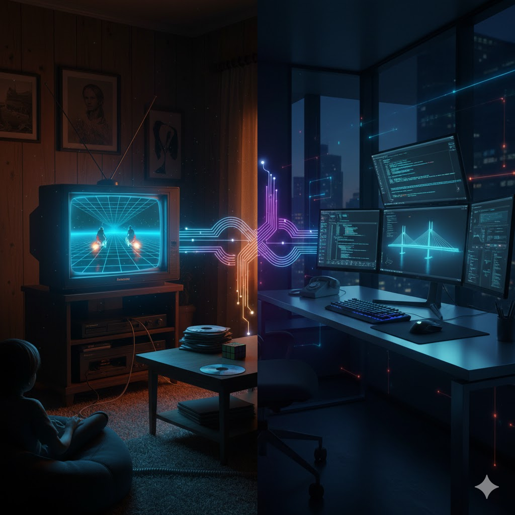 My career took me to Civil Engineering, where I put my skills to work creating CAD software. We modeled the world in ones and zeros. Roads, bridges, detention ponds, and utilities were all drawn onto the digital canvas. Those models became real-world projections, guiding survey crews with lasers and transits to shape our physical environment. Construction crews transformed empty fields into housing subdivisions, shops, highways, and bridges. It was TRON brought to concrete.