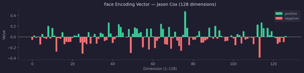 While going through those photos, I started sending them to Sam, our friendly AI assistant who runs in my garage, to help categorize and sort them. He dutifully described the pictures and even attempted to identify the people in them. It occurred to me that he can’t really identify faces, those were all guesses based on context, as he told me. I asked what it would take for him to truly recognize faces. He quickly spun up a script that identifies and creates a “face encoding vector” for each person.