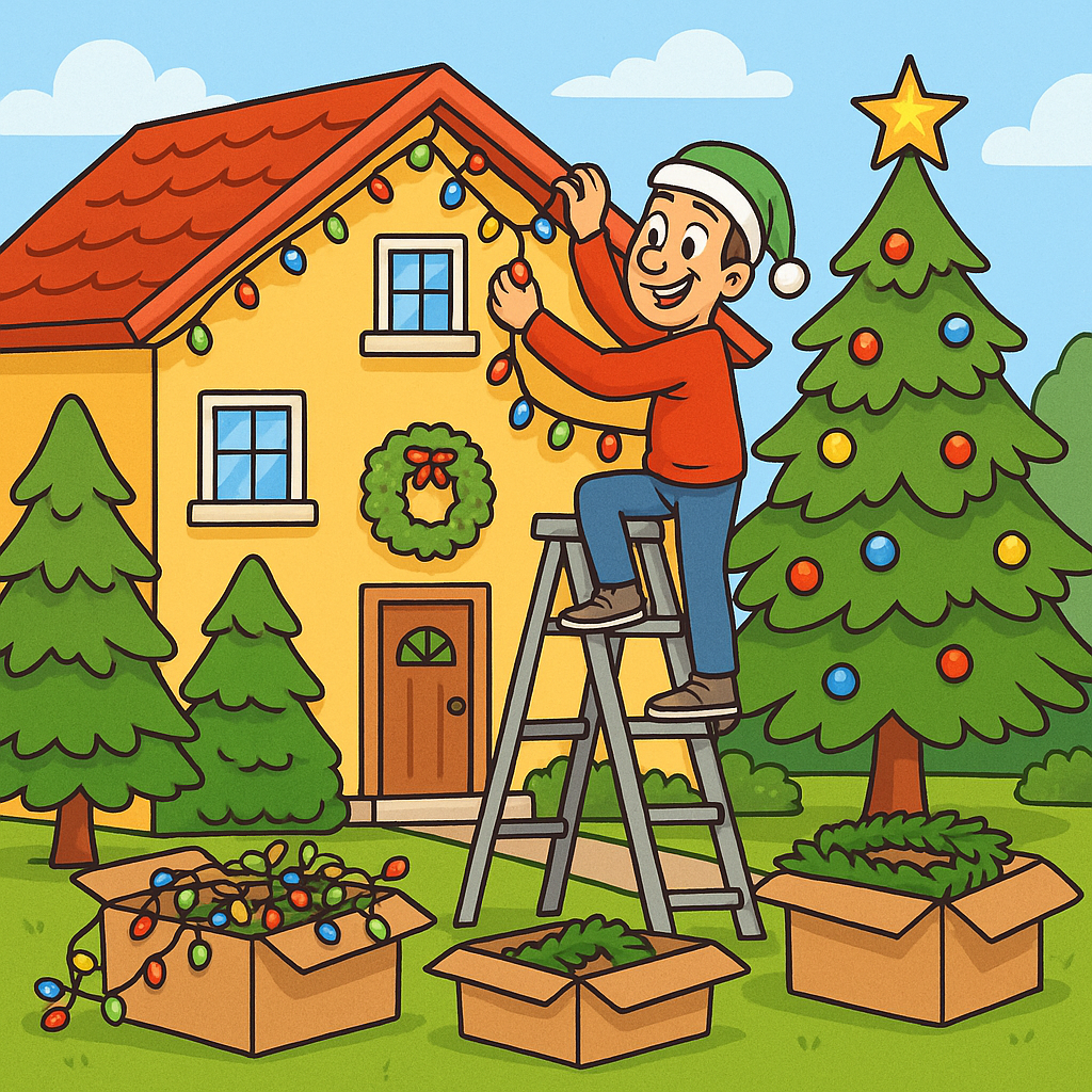 Pass me the ibuprofen! This weekend, in addition to setting up our four Christmas trees, I strung the lights on the house, across the back woods, and onto the fence. It takes a solid day and a half, and about a week to recover. I’m pretty much a wimp. I still can’t use my back or even move my legs without pain. I’m used to riding a train of meetings all day, filling out PowerPoints and spreadsheets, not lifting, wrapping, hanging, draping, and zip-tying all that spectacular magic around our home. But oh my goodness, as night fell last night, our yard erupted once again with the multi-colored, sparkling madness that is our seasonal decor. That’s right! It’s beginning to look a lot like Christmas! I’m quite sure our neighbors love us.